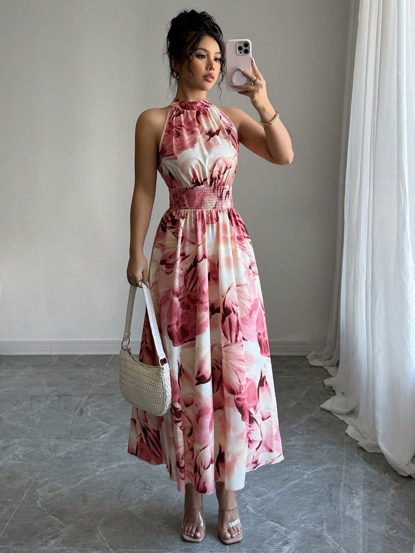 Women’s Random Printed Simple Sleeveless Casual Dress For Everyday Wear Maxi Women Outfit Long Evening Dresses Multicolor Boho Sleeveless Fabric Floral,Plants,All Over Print A Line Non-Stretch Women Clothing, size features are:Bust: ,Length: ,Sleeve Length: